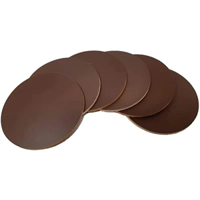 Ashford Ridge Full Grain Leather 10cm Circular Coasters Brown 6 Pack