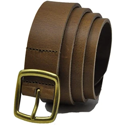 Made in England with beautiful full grain leather that is made to last years and years which partners beautifully with the brass colour full buckle. 34mm (1.25") wide makes this belt perfect for jeans, chinos or formal wear. Available for waist sizes from 28" up to 60" - PLEASE CHECK SIZE GUIDE BEFORE ORDERING. Available in 5 Different Colour Leathers; Black, Brown, Tan, Antique Brown and Vintage Brown. The classic brass colour full buckle really makes this belt stand out.