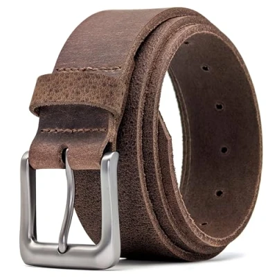 Sizing - THE BEST WAY TO GET YOUR WAIST MEASUREMENT IS TO MEASURE A BELT YOU CURRENTLY USE FROM THE FAR END OF THE BUCKLE TO THE HOLE YOU USE, THAT MEASUREMENT IS YOUR WAIST SIZE. DO NOT RELY ON YOUR JEANS SIZE AS THAT MAY NOT BE ACCURATE. Full Grain Leather - This real leather belt is crafted in Dorset, England. Being full leather helps provide you with a high quality, solid strap and a long lasting belt. Perfect Width for Jeans - Being 38mm means that you can wear these belts with almost anything, but they are perfect with jeans, chinos or casual trousers. They are available in black, brown, tan, a soft vintage brown or an antique brown and for waist sizes from 28" - 60". Unique - Being made of leather means that each mens fashion belt will have its own beautifully unique natural markings. Each belt has then been buffed and edge finished by hand. Reassurance - Made in England by Ashford Ridge you can be assured that great care has been taken in crafting your leather belt, with over 40 years experience with belts and leather goods Ashford Ridge know how to treat leather with the care and attention it deserves.