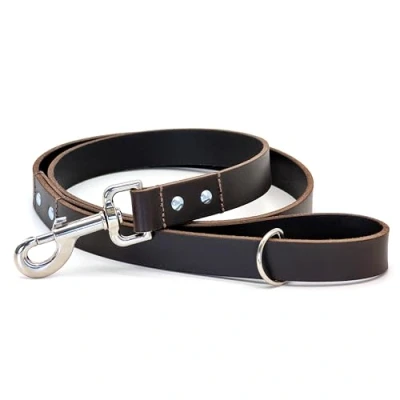 Premium Quality Leather - Our Ashford Ridge dog leads are crafted with 100% full grain leather between 3.5mm - 4.00mm thick, this is a strong durable leather that will last you for years. British Made - We are proud to craft all of our full grain leather dog leads in Dorset, England, this is a family business that prides itself on quality and service. Crafted with Care - Each dog lead has dual machine pressed solid steel rivets at the handle and trigger clip ends. These fixings are strong and secure, allowing you peace of mind that this is a quality lead which will not fall apart. Multiple Colour Options - We offer 5 different colour options to suit your personal preference, the colours available include a standard black, standard brown, antique brown, vintage brown and tan. Perfect Width - Each dog lead is 25mm (1 inch) width providing a comfortable grip for a long walk. It also has a D-ring fitted near the handle for use around your neck if your dog is off the lead.