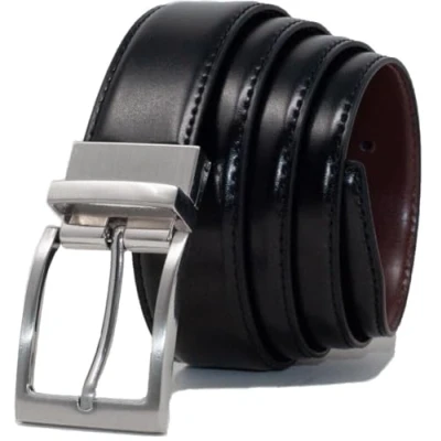 Simple twist reversible buckle gives you the option of a black or brown belt with the flick of the wrist. Perfect 34mm width, ideal for suit trousers, jeans or casual wear. Made with 2 coated leather straps and finished with a classic feather stitch on the edges to improve strength. Available for waist sizes 32" - 48" (PLEASE READ SIZING GUIDE IN MAIN DESCRIPTION) Made by Ashford Ridge