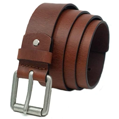 Made of one complete piece of full grain leather straight from the tannery. Available in 2 colours, traditional black or a rich grain tan. Classic roller buckle for a smooth and comfortable fit. Available in 4 different sizes for waists from 32" to 48". Trusted Ashford Ridge brand.