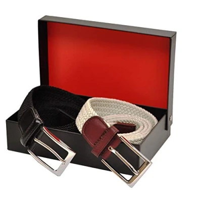 Beautiful 2 Belt Gift Set Presented in Matching Ashford Ridge Gift Box Available for lots of sizes, from 32" waists to 60" waists, please choose size from the drop down box. Perfect width belt for suits, smart or casual wear. Please read sizing guide in main description. If you are unsure please do not hesitate to ask, we have over 35 years experience in belts. Choose from a black/cream gift sert or a black/navy gift set from the colour options. Made by Ashford Ridge