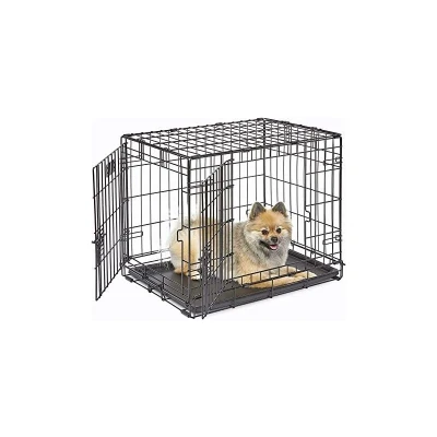 General description This easy-to-assemble, durable dog crate is made from heavy-duty metal with powder-coated wires, ensuring it remains rust-free and resistant to damage from your pet. It is suitable for various activities, including puppy training and traveling with your dog. The space-saving foldable design allows for quick storage when not in use, making it ideal for smaller spaces. Technical specifications Dimensions: L61 x W42 x H48.5 cm (L24" x W16" x H19") Dog Weight Capacity: Small (up to 30 lbs / 13.61 kgs) Net Weight: 4.3 kgs Installation No tools required for assembly; simply unfold and attach the clip locks. Usage Ideal for providing a safe and comfortable space for your pet to sleep, relax, and train. Includes a pull-out tray for easy cleaning. Ample space for adding a cooling mat or comfortable cushion. Other information Features double doors for easy access from the front or side. Equipped with secure, escape-proof locks to prevent your pet from opening the doors.