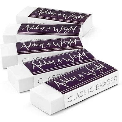 Ashton and Wright Classic Eraser Latex Free Plastic Rubber Pack of 5 White