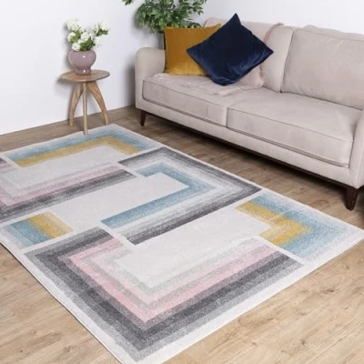 Asiatic Edits Low Pile Geometric Pastel Multi Indoor Rug for Living room, Bedroom, Conservatory, Hallway, Large Area, Easy to Clean, Area Rugs Non Shedding 200x290cm