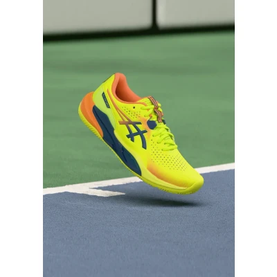 Technology: Wingwall (ASICS) for stability during lateral movements Pguard (ASICS) provides protection in the toe area Sale | Upper material: synthetics/Lining: textile/Sole: abrasionproof rubber/Insole: textile | Sale order at Zalando UK! Size: 8.5. Color: Safety yellow/twilight blue. Pattern: colour gradient.