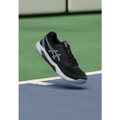 Asics GEL Dedicate 8 Multicourt tennis shoes black/grey blue Sale at Zalando UK | Upper material: imitation leather/ textile/Lining: textile/Sole: synthetics/Insole: textile | Sale order at Zalando UK! Size: 9. Color: Black/grey blue. Pattern: print.