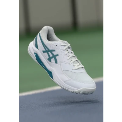 Asics GEL Dedicate 8 Padel shoes white/misty pine Sale at Zalando UK | Upper material: synthetics/textile/Lining: textile/Sole: synthetics/Insole: textile | Sale order at Zalando UK! Size: 9.5. Color: White/misty pine. Pattern: print.