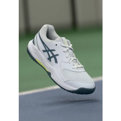 Asics GEL Dedicate 8 Unisex Multicourt tennis shoes white/ironclad Sale at Zalando UK | Upper material: imitation leather/ textile/Lining: textile/Sole: synthetics/Insole: textile | Sale order at Zalando UK! Size: 5. Color: White/ironclad. Pattern: print. Age group: Kids.