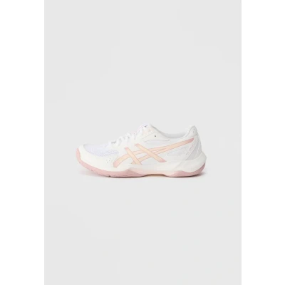 Asics GEL Rocket 12 Volleyball shoes white/pearl pink Sale at Zalando UK | Upper material: imitation leather/ textile/Lining: textile/Sole: synthetics/Insole: textile | Sale order at Zalando UK! Size: 6. Color: White/pearl pink. Pattern: print.