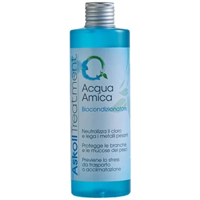 Water friendlyconditionatoreneutralizes chlorine and heavy metals protects the branches and mucous fish prevent stress from transport or air conditioning. Dosage: in the filling stages and in each subsequent change of water add 10 ml (equivalent to 2 caps) every 40 litres of new water Askoll treatment