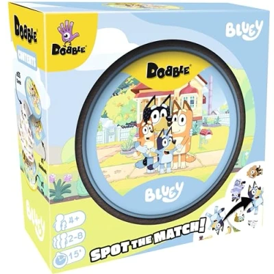 SPOT THE MATCH WITH BLUEY!: Race to find the one matching symbol between any two cards in this fast-paced observation game featuring Bluey & friends. BELOVED BLUEY CHARACTERS & ELEMENTS: Enjoy symbols inspired by Bluey, Bingo, Bandit, Chilli, and iconic elements from the hit TV show. SPECIAL TIN BOX EDITION: Comes in a collectible Bluey-themed tin, making it perfect for travel, storage, and gifting. FUN FOR THE WHOLE FAMILY: Designed for 2-8 players, ages 4 and up, making it a great game for family game nights, parties, and playdates. QUICK TO LEARN, ENDLESSLY FUN: With simple rules and fast gameplay, Spot It! Bluey provides hours of fun for kids and adults alike., Manufacturer: Zygomatic