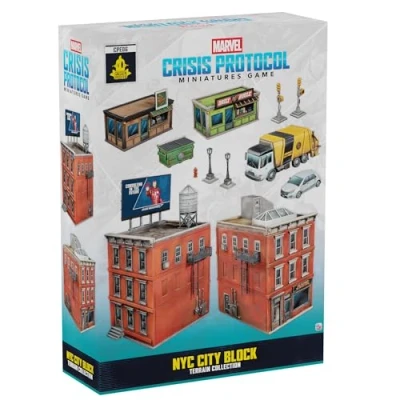 BUILD YOUR BATTLEFIELD: Transform your Marvel: Crisis Protocol games with the NYC City Block Terrain Collection, bringing the iconic streets of New York to life. AUTHENTIC CITY PIECES: Includes 2 apartment buildings, 2 cars, 1 Daily Bugle stand, 1 Daily Grind shop, 2 dumpsters, 2 traffic lights, 2 street lights, 1 commercial truck, and 1 billboard sticker. IMMERSIVE GAMEPLAY: Recreate legendary Marvel battles where Spider-Man, Captain America, Doctor Strange, Luke Cage, and more have defended New York from villains. EXPAND YOUR MARVEL UNIVERSE: Compatible with all Marvel: Crisis Protocol expansions, allowing players to customise and enhance their tabletop experience with cinematic city scenery. BONUS GAME CONTENT: Comes with 7 One-Shot Cards that introduce additional scenario options, adding even more variety and replayability to your games., Manufacturer: Atomic Mass Games