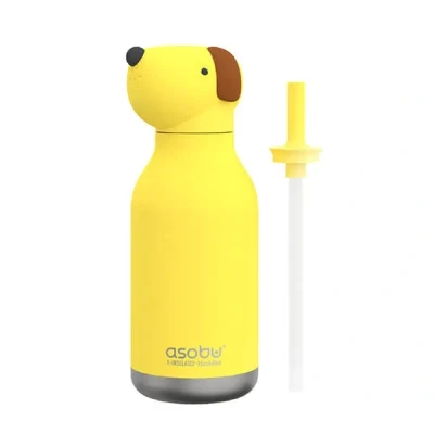 Make hydration fun and playful with the Asobu Doggie Bestie Bottle! This adorable drink bottle is designed for everyone, from ages 4 to 94. It keeps drinks cold for up to 24 hours or hot for up to 12 hours, thanks to its stainless steel construction and double-walled vacuum insulation.The bottle features a leak-proof, screw-on lid and a removable, flexi-safe silicone straw, making it the perfect companion for any adventure. It is also BPA-free. The ergonomic shape and soft-touch coating provide an easy grip, even for little hands.With a capacity of 460ml, the Asobu Doggie Bestie Bottle measures approximately 22.5cm in height and has a diameter of 7.5cm.While it is dishwasher safe, we recommend hand washing to maintain its good condition.