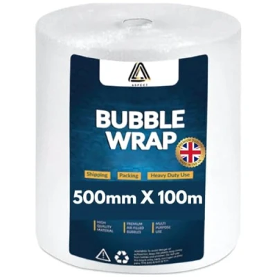 Multipurpose Roll of Bubble Wrap - This bubble wrap is excellent for a variety of uses, including business, warehouse picking and packing, everyday use, and even occasional packing trips. You can cut the bubble wrap easily to match your needs Small Bubble Wrap - Rolls of bubble wrap work well for bridging big gaps between your fragile items during transit to prevent friction and give cushioning with air tight technology Lightweight and Durable - The large bubble wrap packing offers maximum protection with minimum weight. The bubble cushioning wrap is lightweight and versatile which perfect for packing , shipping and moving items. Quality UK Manufactured Bubble Wrap - Our Aspect Bubble wraps are meticulously crafted in the UK, adhering to the highest standards of manufacturing. Designed with precision and in line with the UK manufacturing code of conduct, these bubble wrap rolls offer superior protection. The standard size of 500mm x 100m ensures ample coverage for your packaging needs. What’s more? You Come First for Us! We value our clients greatly and go above and beyond to deliver flawless products each and every time. Each product goes through, intense quality control and testing. In the odd occasion that our Bubble Wrap Rolls have any issues, please let us know and we'll try our best to resolve them. So go on, get one yours today!