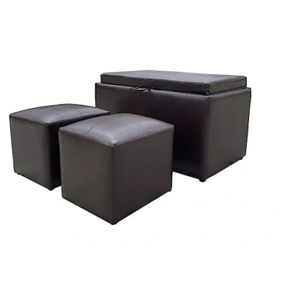 ASPECT Carey Storage Bench With 2 Side Ottomans (Espresso Brown PU)
