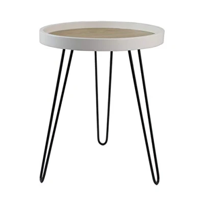The Round Wood Tray Top Design Provides A Unique Sense Of Style While The Metal Base Ensure Quality And Years Of Lasting Enjoyment. Dimensions: 40 Dia X 49(H)Cm Material: Made From Steel Base In Black Coating And Ash Veneered Top Features Round Top With A Lipped Edge, Finish With White And Ash Veneer, And Three Hairpin Legs ; Our Decorative Side Table Will Add Confident Style To Your Space. Assembly required. Please note, as this table has been made from natural material the colour and finish may vary