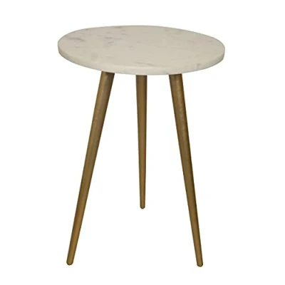 ASPECT Maxine Tripods Marble Top Side Table, Base, White/Gold, 38 Ø x 55 H cm