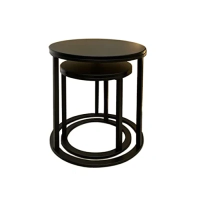 This set of two nesting tables will complement any room and make a beautiful and functional addition to your home decor. Dimensions: L 40 diax50(H)cm / S 30x40(H)cm. Round occasional tables create an eye-catching look in your space. The smaller table fits perfectly under the larger table for a sleek and endlessly versatile look that only a great set of nesting tables can offer. Metal and manufacturer wood occasional tables fit well with a variety of decor.