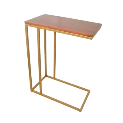 Aspect Romy C Sofa Table/Side/Laptop Table (Brown Acacia Wood Top/Gold Frame, 51x28x66(H) cm) ST93BR/G