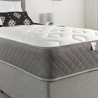 Aspire Beds Comfort Plus Aspire-Cool Touch Memory Foam Bonnell Sprung Value Essentials Spring Hybrid Mattress, Grey Border, 2ft6 Small Shorty Single (2ft6 x 5ft9, 75cm x 175cm)