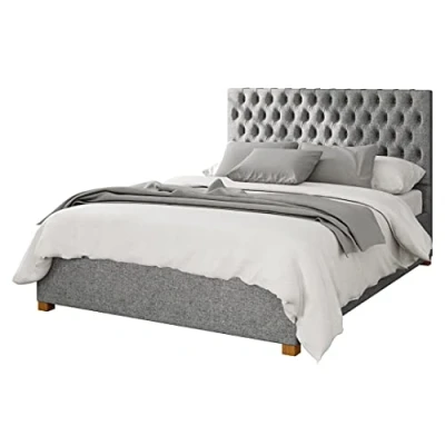 PREMIUM UK MADE OTTOMAN BED FRAME: This Stylish High End Opening UK Manufactured Ottoman Bed Frame Is A Superior Quality Bed Frame Where Style Storage & Practicality Are Required Due To The Bed Frame Offering Ample Under Bed Storage 9 FABRIC & 32 COLOUR UNRIVALLED CHOICE: This Storage Bed Is Available In 9 Different Fabrics & 32 Colours. Featuring A Durable Steel Framework With Quality Hard Wearing Sprung Bed Slats. The Slats Increase Comfort Whilst Also Increasing Mattress Life SUPERIOR GAS LIFT MECHANISM: Featuring Supreme Quality Gas Lift Pistons Which Lock In Place When Open Allows The Large Storage Area To Be Easily Accessed Enabling A Large Variety Of Items To Be Stored Away Under The Mattress Conveniently DEEP PADDED BUTTONED HEADBOARD: This Ottoman Bed Frame Comes With Deep Plush Padding For Added Comfort When Sitting Up In Bed & The Fabric Base Attaches To The Underside Of The Bed Protecting Your Stored Items EASY HASSLE FREE ASSEMBLY: Suitable for use with all standard UK size mattresses. This Ottoman storage bed frame meets all UK FR and safety standards. It’s Supplied flat pack for self-assembly, approximate build time of 60-90 minutes