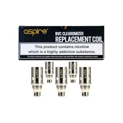 Aspire BVC Coil Replacement Coils, 1.8 Ohm Enhanced Flavor, Smooth Vapor (Pack of 5) Compatible with K1, K2, CE5, ET and Viva Nova, Long Lasting, Vaping No Nicotine