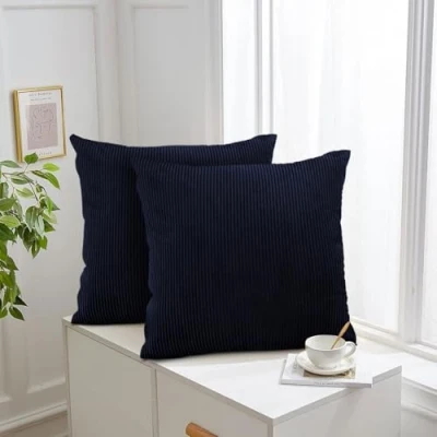 INCLUDE: Cushion Covers 45 x 45 Pack of 2 (2 Cushion Covers or 2 Inserts) 18 x 18 inches. FEATURE: These Soft Plush Velvet Cushion Covers Feature an Invisible Zipper, Ensuring a Seamless, Smooth Feel with no Discomfort. The Luxurious Texture adds a Touch of Elegance while Maintaining Comfort in every use. ELEGANT DESIGN: The Corduroy Cushion Covers have a Simple Striped Design with a Textured Feel, Bringing a Modern Look to your Space. Perfect for Adding Style to any Living Room or Bedroom on Sofas, armchair and Garden. STUNNING COLORS: Explore our stunning collection of vibrant colors, designed to perfectly match any bedding, home decor, or living room style. With so many choices, you're sure to find the ideal shade to transform your space and make it truly yours! CARE INTRUCTIONS: The Pattern Covers are Machine Washable for Convenient Care. Tumble dry on low, do not bleach and iron.