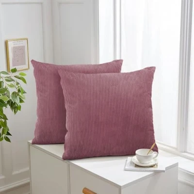 INCLUDE: Cushion Covers 45 x 45 Pack of 2 (2 Cushion Covers or 2 Inserts) 18 x 18 inches. FEATURE: These Soft Plush Velvet Cushion Covers Feature an Invisible Zipper, Ensuring a Seamless, Smooth Feel with no Discomfort. The Luxurious Texture adds a Touch of Elegance while Maintaining Comfort in every use. ELEGANT DESIGN: The Corduroy Cushion Covers have a Simple Striped Design with a Textured Feel, Bringing a Modern Look to your Space. Perfect for Adding Style to any Living Room or Bedroom on Sofas, armchair and Garden. STUNNING COLORS: Explore our stunning collection of vibrant colors, designed to perfectly match any bedding, home decor, or living room style. With so many choices, you're sure to find the ideal shade to transform your space and make it truly yours! CARE INTRUCTIONS: The Pattern Covers are Machine Washable for Convenient Care. Tumble dry on low, do not bleach and iron.