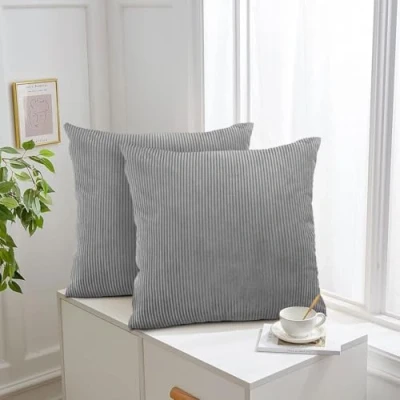 INCLUDE: Cushion Covers 45 x 45 Pack of 2 (2 Cushion Covers or 2 Inserts) 18 x 18 inches. FEATURE: These Soft Plush Velvet Cushion Covers Feature an Invisible Zipper, Ensuring a Seamless, Smooth Feel with no Discomfort. The Luxurious Texture adds a Touch of Elegance while Maintaining Comfort in every use. ELEGANT DESIGN: The Corduroy Cushion Covers have a Simple Striped Design with a Textured Feel, Bringing a Modern Look to your Space. Perfect for Adding Style to any Living Room or Bedroom on Sofas, armchair and Garden. STUNNING COLORS: Explore our stunning collection of vibrant colors, designed to perfectly match any bedding, home decor, or living room style. With so many choices, you're sure to find the ideal shade to transform your space and make it truly yours! CARE INTRUCTIONS: The Pattern Covers are Machine Washable for Convenient Care. Tumble dry on low, do not bleach and iron.