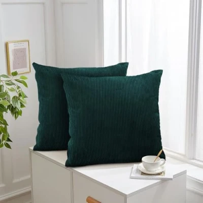 INCLUDE: Cushion Covers 45 x 45 Pack of 2 (2 Cushion Covers or 2 Inserts) 18 x 18 inches. FEATURE: These Soft Plush Velvet Cushion Covers Feature an Invisible Zipper, Ensuring a Seamless, Smooth Feel with no Discomfort. The Luxurious Texture adds a Touch of Elegance while Maintaining Comfort in every use. ELEGANT DESIGN: The Corduroy Cushion Covers have a Simple Striped Design with a Textured Feel, Bringing a Modern Look to your Space. Perfect for Adding Style to any Living Room or Bedroom on Sofas, armchair and Garden. STUNNING COLORS: Explore our stunning collection of vibrant colors, designed to perfectly match any bedding, home decor, or living room style. With so many choices, you're sure to find the ideal shade to transform your space and make it truly yours! CARE INTRUCTIONS: The Pattern Covers are Machine Washable for Convenient Care. Tumble dry on low, do not bleach and iron.