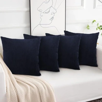 INCLUDE: Cushion Covers 45 x 45 Pack of 4 (4 Cushion Covers or 4 Inserts) 18 x 18 inches FEATURE: These Soft Plush Velvet Cushion Covers Feature an Invisible Zipper, Ensuring a Seamless, Smooth Feel with no Discomfort. The Luxurious Texture adds a Touch of Elegance while Maintaining Comfort in every use. ELEGANT DESIGN: The Corduroy Cushion Covers have a Simple Striped Design with a Textured Feel, Bringing a Modern Look to your Space. Perfect for Adding Style to any Living Room or Bedroom on Sofas, armchair and Garden. STUNNING COLORS: Explore our stunning collection of vibrant colors, designed to perfectly match any bedding, home decor, or living room style. With so many choices, you're sure to find the ideal shade to transform your space and make it truly yours! CARE INTRUCTIONS: The Pattern Covers are Machine Washable for Convenient Care. Tumble dry on low, do not bleach and iron.