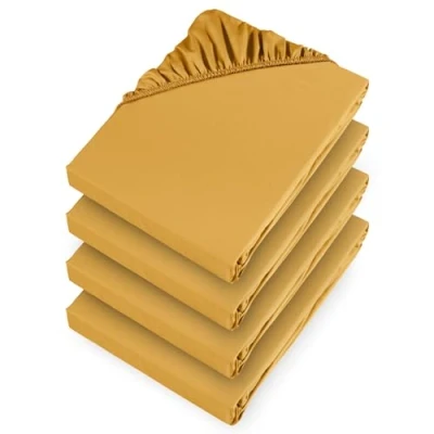 Aspire Homeware Double Fitted Sheet 4 Pack 25 Cm Deep Pocket Ochre Bed Soft & Breathable Bedsheet Brushed Microfiber Shrinkage and Fade Resistant Bottom