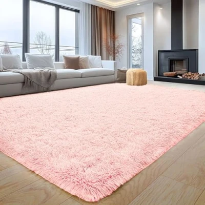 Aspire Homeware Fluffy Shaggy Pink Rugs Living Room Large 140x200 cm, 450 GSM Thick Soft Pile Non Slip Carpet, Shedding, Machine Washable Bedside Area Rug for Bedroom, Hallway, Kids Nursery