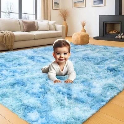 Aspire Homeware Rugs Living Room Large 160x230 cm Tie Dye Teal Area for Bedroom Anti Slip Modern Super Soft Plush Carpets Lounge Fluffy Shaggy Bedside