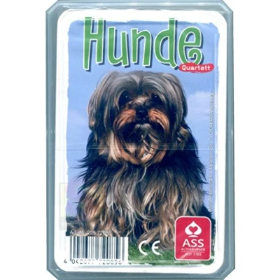 In the ASS Altenburg dog quartet, man's faithful friends can be found in 8 categories Game duration: approx. 10-15 minutes Number of players: 2 or more Age: from 6 years High-quality, made in Germany, Manufacturer: ASS Altenburger