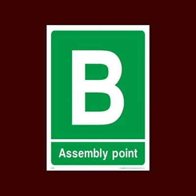 Assembly Point B Plastic Sign Fire, Push Bar/Pad, Disabled Fire Exit, Assembly, Break Glass, Lift (EE63)