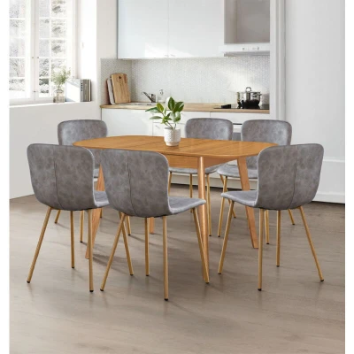 Aston Extending Table and Chairs Set 6, Butterfly Leaf Kitchen Taupe Faux Leather Chairs, Wooden Dining