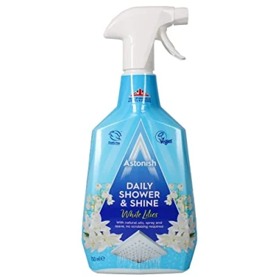 Crystal Shine: Achieve a crystal clean finish with this powerful shower spray, designed for fast use as no scrubbing is required. Simply spray and watch it dissolve the dirt away like magic Works Fast: Time can be limited, that’s why Astonish have designed this shower and shine spray to get to work in a few minutes, dissolving soap scum and limescale build-up Multi-functional: Designed for an array of bathroom uses, this powerful cleaner is perfect to use on plastic and glass screens, enamel trays, tiles and vinyl curtains. Making it the perfect product to include into your cleaning routine Fresh scent: Not only will you be banishing nasty dirt and germs, but this spray is packed with a lovely white lily scent made from natural oils for a beautiful long-lasting aroma Vegan: Here at Astonish, we care about our impact and the environment, that’s why all of our products are vegan and cruelty-free