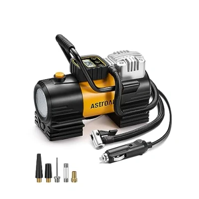 Advanced TrueGauge Display: This Tyre pump is equipped with AstroAI's upgraded sensor technology, capable of collecting pressure data at a frequency of 200 times per second. The valid data is 60% higher than the market average. This accurate display ensures safer driving no matter where you roam. Rapid < 1 Min Inflation: The Ultrafast Tyre Inflator can inflate a 215/55 R17 Compact SUV tyre from 30 PSI to 36 PSI in just 1 min, and fill 2 flat tyres from 0-36PSI in 13 min without cooling Breaks. To ensure consistently high performance, we suggest letting the pump cool off for at least 10 minutes after every 15 minutes of continuous use. Premium Metal Structure: This Car Tyre Inflator’s solid metal structure includes rubber pad to prevent slippage and an ergonomically-designed metal handle for easy movement. Portable, Versatile, & Adaptable: The Portable Tyre Inflator can be easily stored anywhere in your car for instant access thanks to its 8.78*18*16 cm dimensions and 936g weight. It’s widely compatible with cars, bicycles, motorcycles, SUV tyres, balls or swimming inflatables. (NOTE: This inflator is incompatible with truck tyres.) What You Get: 1*AstroAI Portable Tyre Inflator, 1*Replacement Fuse, 1*Needle Valve Adapter, 1*Presta-to-Schrader Adapter, 2* Tapered Air Nozzles, 1*User Manual. If you have any questions or concerns, feel free to reach out to us!, Weight: 2.425084882 pounds, Manufacturer: AstroAI
