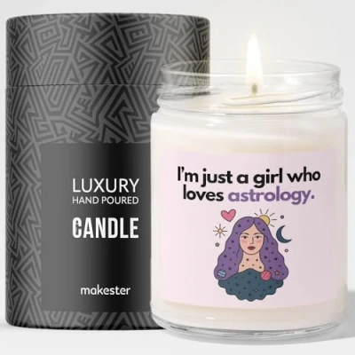 Astrologer Gift Luxury Soy Wax Candle Vanilla, Jasmine, Sugared Almond Makester