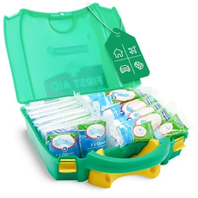 FULLY HSE COMPLIANT: Complete with all necessary items for up to 20 people, this kit meets HSE standards for first aid compliance. Rest easy knowing you're fully equipped for any situation! VERSATILE MULTI-LOCATION USE: Designed for emergencies indoors or out, this kit is essential for home and workplace first aid. Its size and weight also make it ideal holiday or as a car accessories. WALL MOUNTABLE: This refillable survival kit includes an easy mount bracket, ensuring convenient storage while remaining easy to spot in case of an emergency. Just grab and go! ANTI CONTAMINATION PACKAGING: This kit comes in an easy wipe box for low maintenance. The individually wrapped contents safeguards against contamination and ensures hygiene with every use! PORTABLE AND LIGHTWEIGHT: Featuring a compact design and easy carry handle, this lightweight travel first aid kit is easy to transport, making it perfect for on-the-go use and travel readiness!