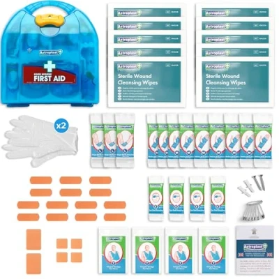 FULLY HSE COMPLIANT - Meets UK Health & Safety standards for 1-20 people, ensuring legal & safe first aid coverage in homes, offices, schools, & public spaces. Rest easy knowing you're fully prepared! 36 ESSENTIAL FIRST AID SUPPLIES – Includes washproof plasters, sterile saline wipes, gloves, bandages and dressings, and more – everything needed to treat minor injuries effectively in any setting. EASY-GRAB, WALL-MOUNTED FIRST AID KIT – Keep first aid supplies securely in place and instantly accessible with a sturdy wall-mount bracket, ensuring rapid response when every second counts! PORTABLE & TRAVEL-READY WITH QUICK-ACCESS CLIP – Lightweight & compact with a secure one-clip opening, perfect for fast-response first aid in workplaces, vehicles, sports events, & travel. SMART ORGANISATION FOR INSTANT ACCESS – Intuitively organised compartments let you quickly locate supplies in emergencies. No more frantic searching – just immediate help when it matters most! ANTI CONTAMINATION PACKAGING FOR LONG LASTING SAFETY – Individually wrapped contents stay clean and sterile, while the easy-wipe, durable box keeps your kit low-maintenance and ready for emergencies! COST-EFFECTIVE & ECO-FRIENDLY – EASY REFILLS AVAILABLE – Save money and reduce waste with refillable supplies, so your first aid kit is always stocked and ready without unnecessary replacements!