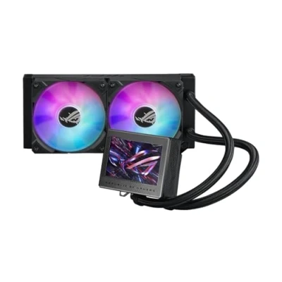 A 3.5” LCD screen provides instant of monitoring hardware information and customizable GIF animations, now with twice the storage space 8th gen Asetek pump with a 3 phase motor delivers ultimate cooling performance, higher flow and lower impedance as well as noise reduction An embedded fan with a new ring shaped frame design and advanced airflow channels improves to reduce heat around VRM area Premium ROG ARGB magnetic daisy chainable fans with Gen 2 LEDs let users customize lighting effects Armoury Crate offers complete control of pump, embedded fan, and radiator fan speeds, and allows custom animations and system stats to be displayed on the LCD screen A free one year AIDA 64 license is also provided for advanced system monitoring