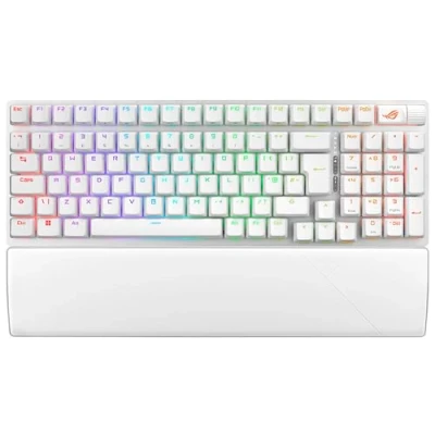 96 percent layout: Retains all function and number keys in a more compact and efficient layout that frees up desk space, with a form factor that is only 1 cm wider than a standard 80 percent keyboard Tri-mode connection: Connect using Bluetooth (up to three devices), 2.4 GHz with ROG SpeedNova wireless technology (up to 1500 hours of battery life) or wired USB Hot-swappable switches: Pre-lubed NX Snow linear switches with the walled stem design that enhances stability and prevents dust intrusion Sound-dampening foam with switch-dampening pads: Unique, integrated dampening foam with added switch-dampening pad structure absorbs pinging noises and echoes for improved keystroke acoustics Enhanced typing experience: Pre-lubed keyboard stabilizers produce less friction for smoother keystrokes and stability for longer keys; durable ROG PBT doubleshot keycaps or UV-coated ABS keycaps offer a premium feel and shine resistance Hotkeys: F1–F5 keys are pre-programmed as hotkeys for Xbox Game Bar and recording