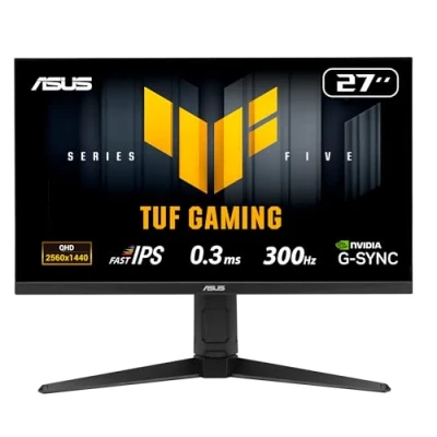 27” QHD(2560 x 1440) Fast IPS panel with 300Hz refresh rate for fast paced gameplay ASUS Fast IPS technology enables a 0.3ms (min) response time for sharp gaming visuals with high frame rates FreeSync Premium and G-Sync compatible delivers a tear-free gaming experience ASUS Extreme Low Motion Blur Sync technology (ELMB SYNC) enables ELMB together with variable refresh rate, eliminating ghosting and tearing for sharp gaming visuals with high frame rates High Dynamic Range (HDR) technology with DisplayHDR 400 compliance supports HDR-10 format to enhance bright and dark areas DisplayWidget Center enables easy OSD access and monitor settings adjustments with a mouse TUF Gaming A.I technology with AI-powered features to enhance users' gaming experience