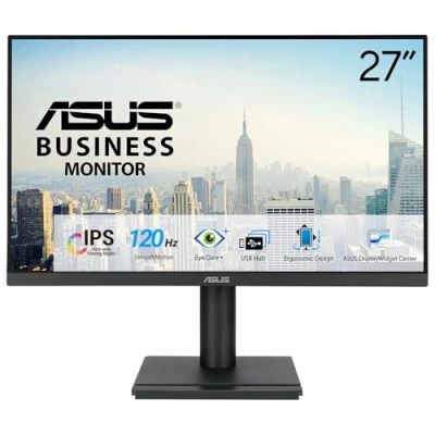ASUS VA279QGS Business Monitor 27 inch, Full HD IPS (1920 x 1080), 1ms (MPRT), 120Hz, HDMI, DisplayPort and VGA, Frameless Flicker, Low Blue Light Technology, Ergonomic Design,