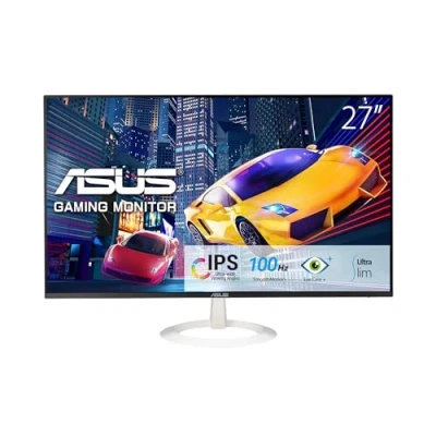 ASUS VZ27EHF W Eye Care Gaming Monitor 27 inch, IPS, Full HD, Frameless, 100Hz, Adaptive Sync, 1ms MPRT, HDMI, Low Blue Light, Flicker Free, Wall Mountable
