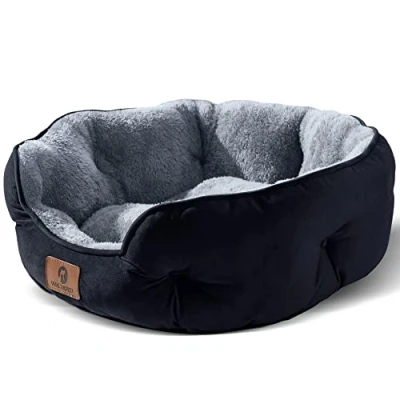 Asvin Medium Dog Bed for Dogs, Large Cat Beds Indoor Cats, Pet Puppy and Kitty, Extra Soft & Machine Washable with Anti Slip Water Resistant Oxford Bottom, Black, 25 inches